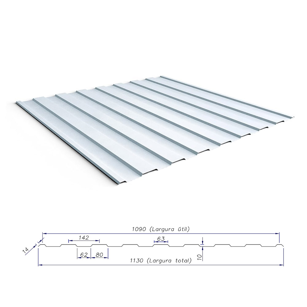 As telhas metálicas RT 10/1090 são ideais para forros e fachadas, além de poderem ser utilizadas na confecção de divisórias e até portões.
